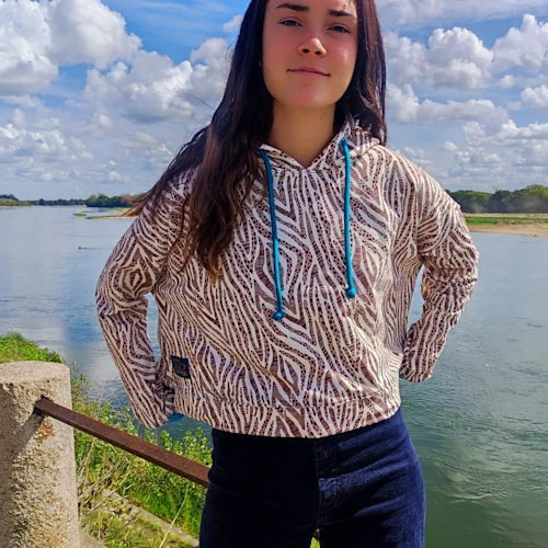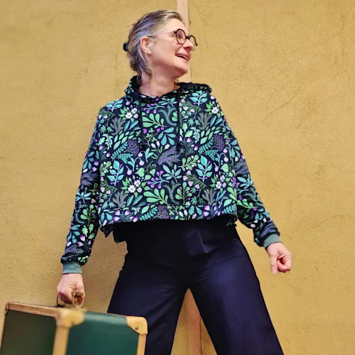 Les filles aussi aiment les sweats à capuche ! Le sweat à capuche est un incontournable, vous pouvez imaginer le vôtre uni, ou avec des motifs.Celui ci est épuré, sans zip ni poche, juste un cordon assorti pour resserrer la capuche sur votre auguste tête.En molleton, il n'en sera que plus doux et confortable.La capuche est doublée d'un jersey uni, pour donner plus de tenue à l'ensemble. On peut opter pour un sweat homogène, mais aussi pour une manche (gauche ou droite) coupée dans le même tissu que celui de la capuche, et le reste du vêtement dans une autre étoffe...A vous de jouer! Celui-ci est décontracté, mais assez près du corps.Si vous aimez le porter plus large, n'hésitez pas à choisir la taille au-dessus de la vôtre, et on adaptera la longueur des bras en fonction de vos mesures. option intérieur capuche à motifs : supplément 9 euros option Jacquard : supplément 5 euros