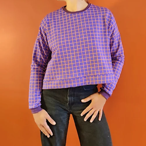 Le sweat Classica a une encolure plus resserrée. Les manches sont montées sur l'épaule, c'est le sweat classique ! Il est assez ajusté, ainsi, si vous le voulez ample, choisissez la taille au-dessus de votre taille habituelle. Plusieurs options pour les finitions, bracelets de manches et/ou bande en bas, ou ourlets classiques. Comme tous les autres modèles, vous pouvez composer ce modèle comme bon vous semble, en associant plusieurs tissus, unis ou à motifs. Supplément Jacquard: 5 euros Réduction ourlets classique: Soustraire 5 euros